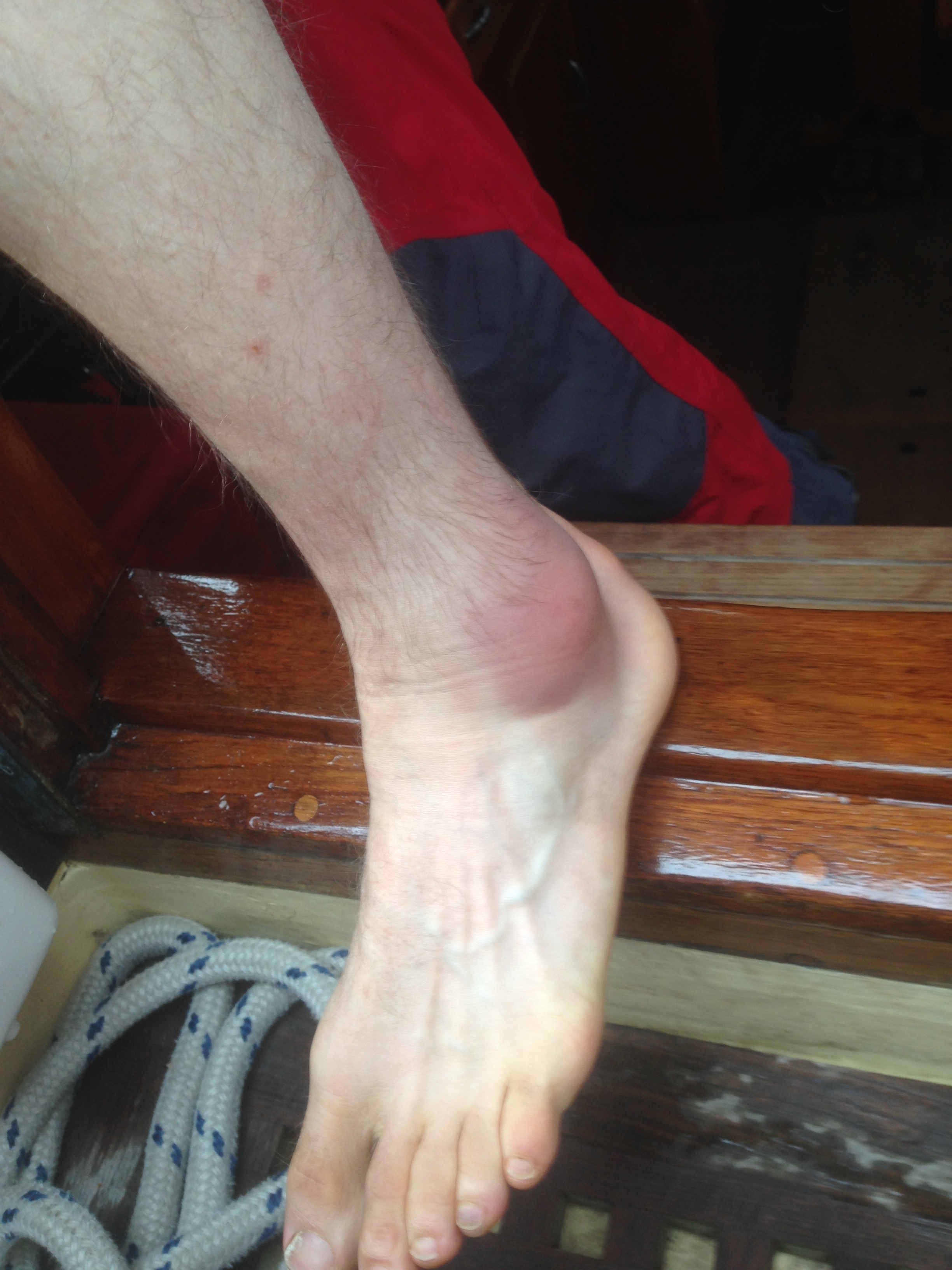 The crew had realised that our slow progress in the water meant we had no real chance of completing the course, even if Angus was able to run (which with an ankle as big as a melon he really wasn’t), and had taken the executive decision to motor to Jura and give us a chance of sailing as much of the rest of the course as we could. No point drifting in circles for twelve hours waiting for the tide, might as well salvage some of a sailing weekend for the Jura to Largs leg.