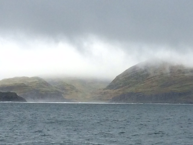 After an evening in the Jura pub catching up with family and friends, a few hours of sleep, and we were heading off into wind and wet towards Largs, a sailing team of 5 now, no more running expected.