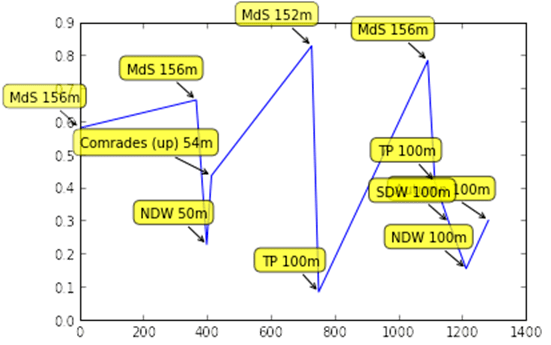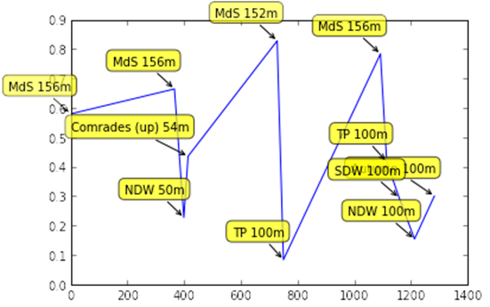 0.44 (1105/1957) in Comrades (up) (Jun, 54m)