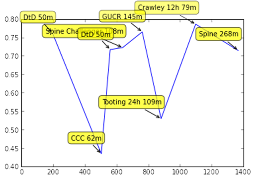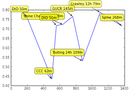 Turbo doesn’t disclose her training data, but has been quietly putting in some serious training mileage this year, narrowly missing out on completing the whole February “Run Till You Drop” challenge. However the poker faced investment banker has been heard muttering phrases like “this is a pure training race”, and “oh gosh I’m so unfit”.