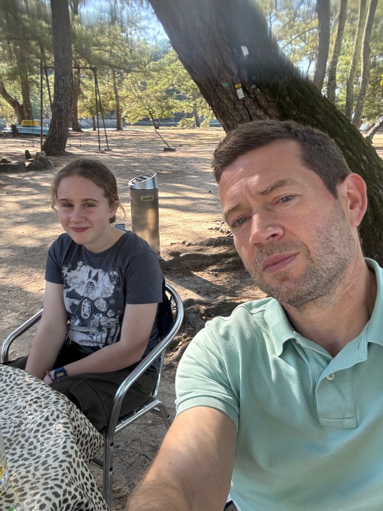 “There is a local beach over there, it’s quiet and we can get a drink and some food”, that sounds much more like it. We beach the vessels and only slightly damp settle ourselves around a table set in a shady wood with views over the bay, small local deer wander around, thankfully they don’t seem to be the biting kind.
