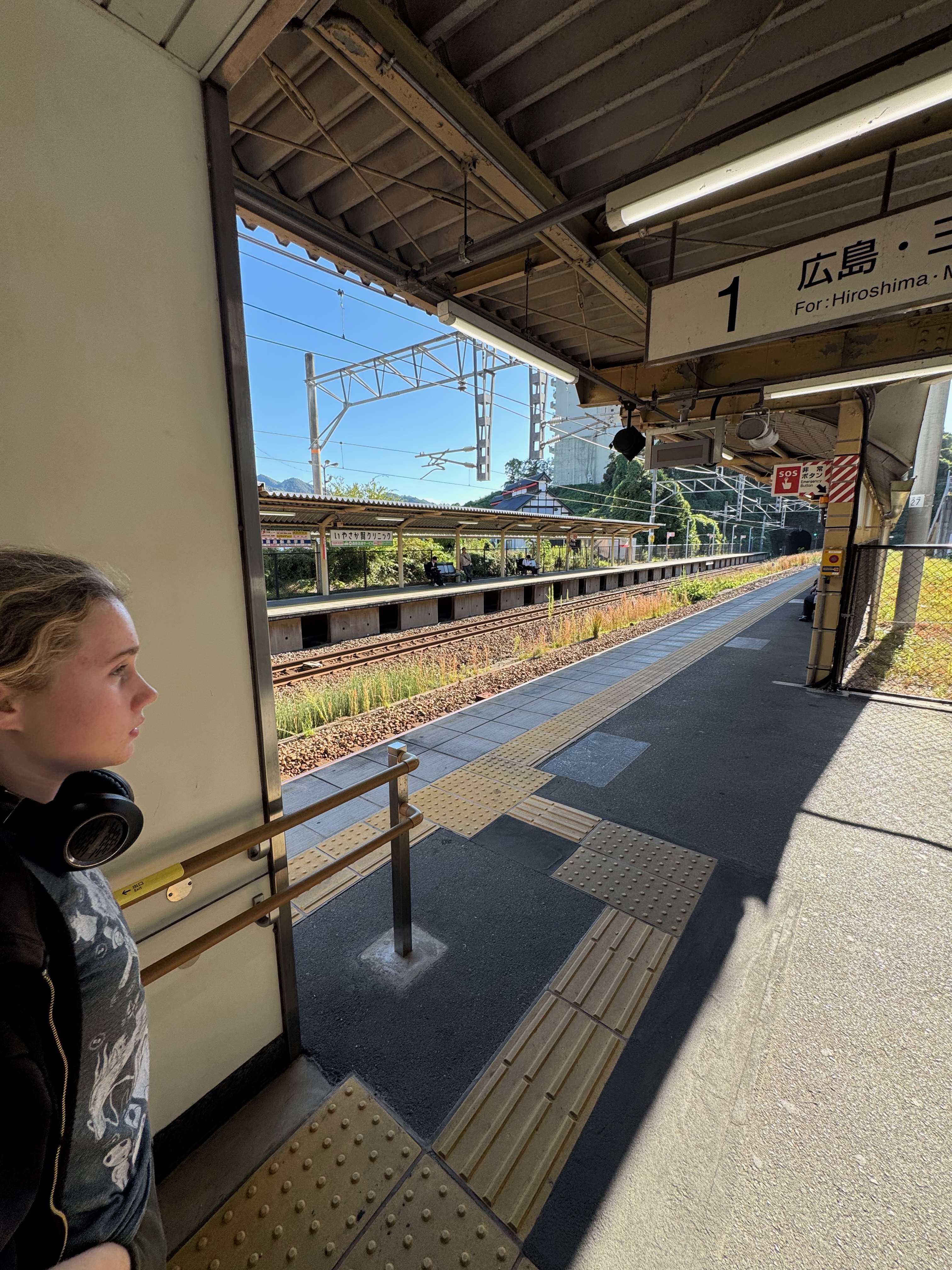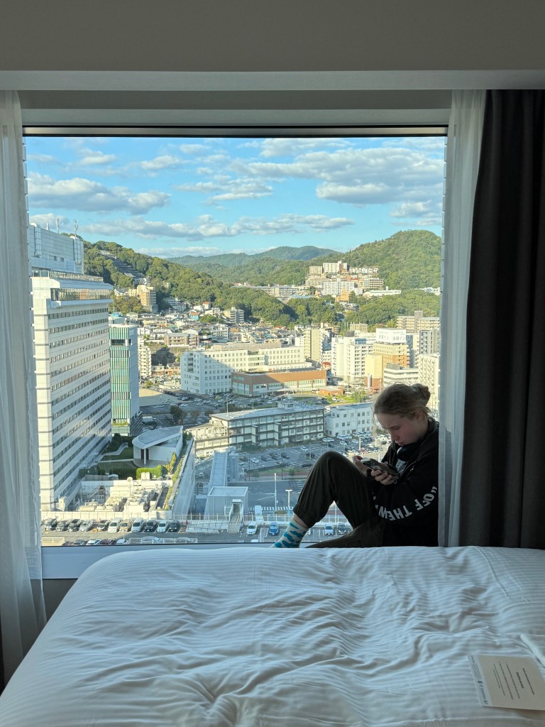 Actually the real reason was that we didn’t have much time after arriving to drop our bags and get ourselves down to near Miyajima island for the main activity of the day. Trix was grumbling about getting a taxi and thankfully we found the hotel really quickly and were back on a train platform with loads of time in our pockets.