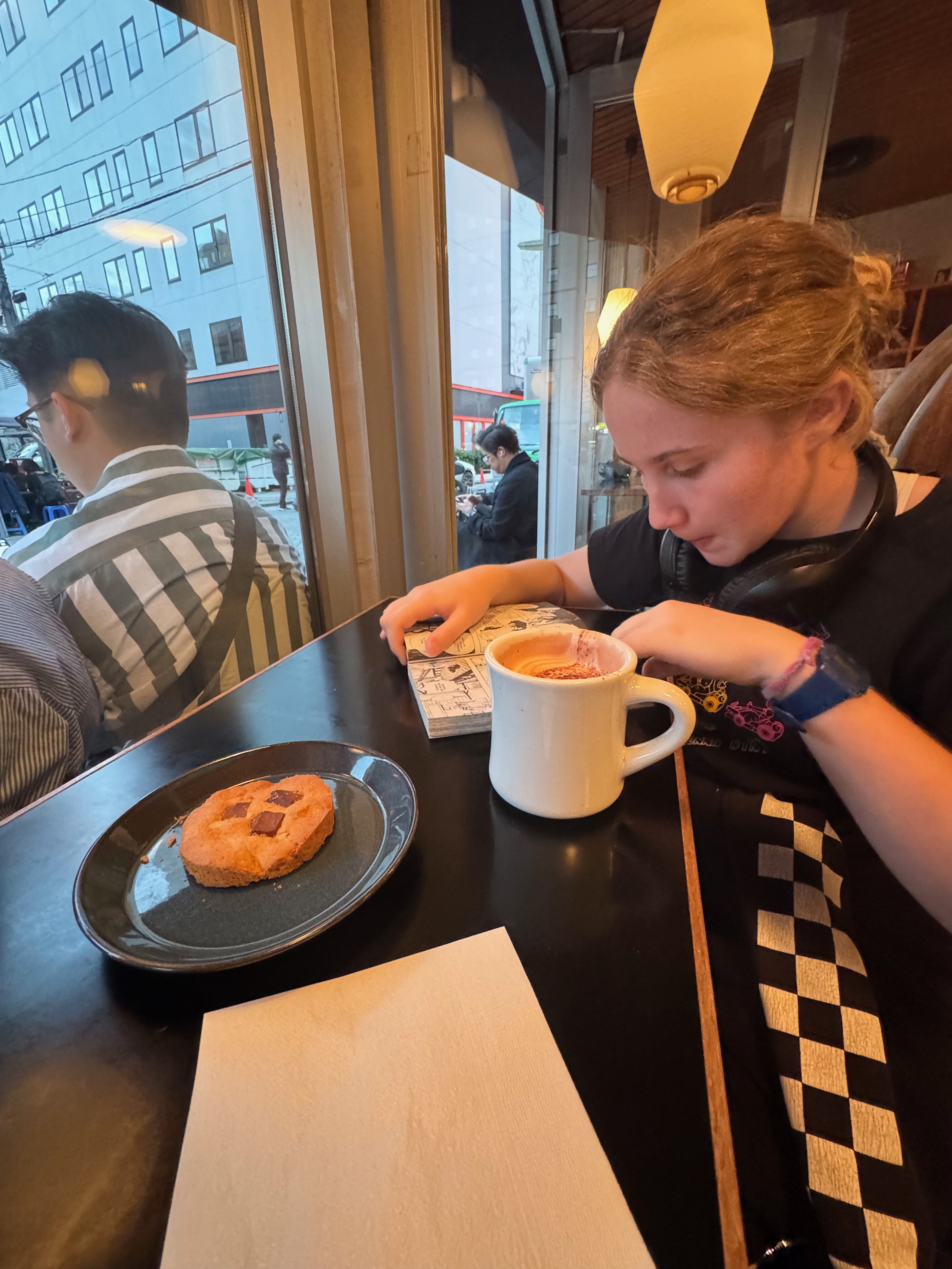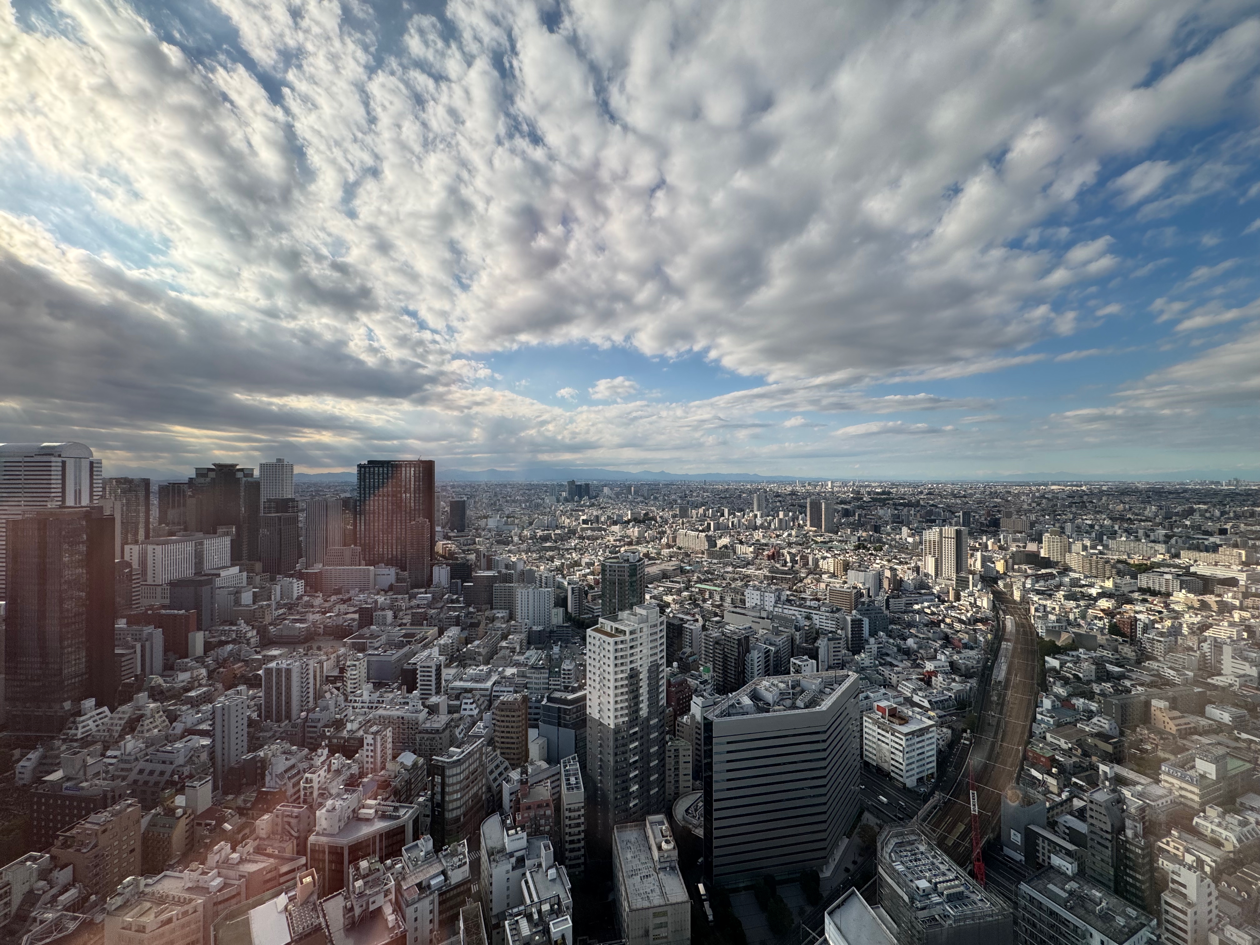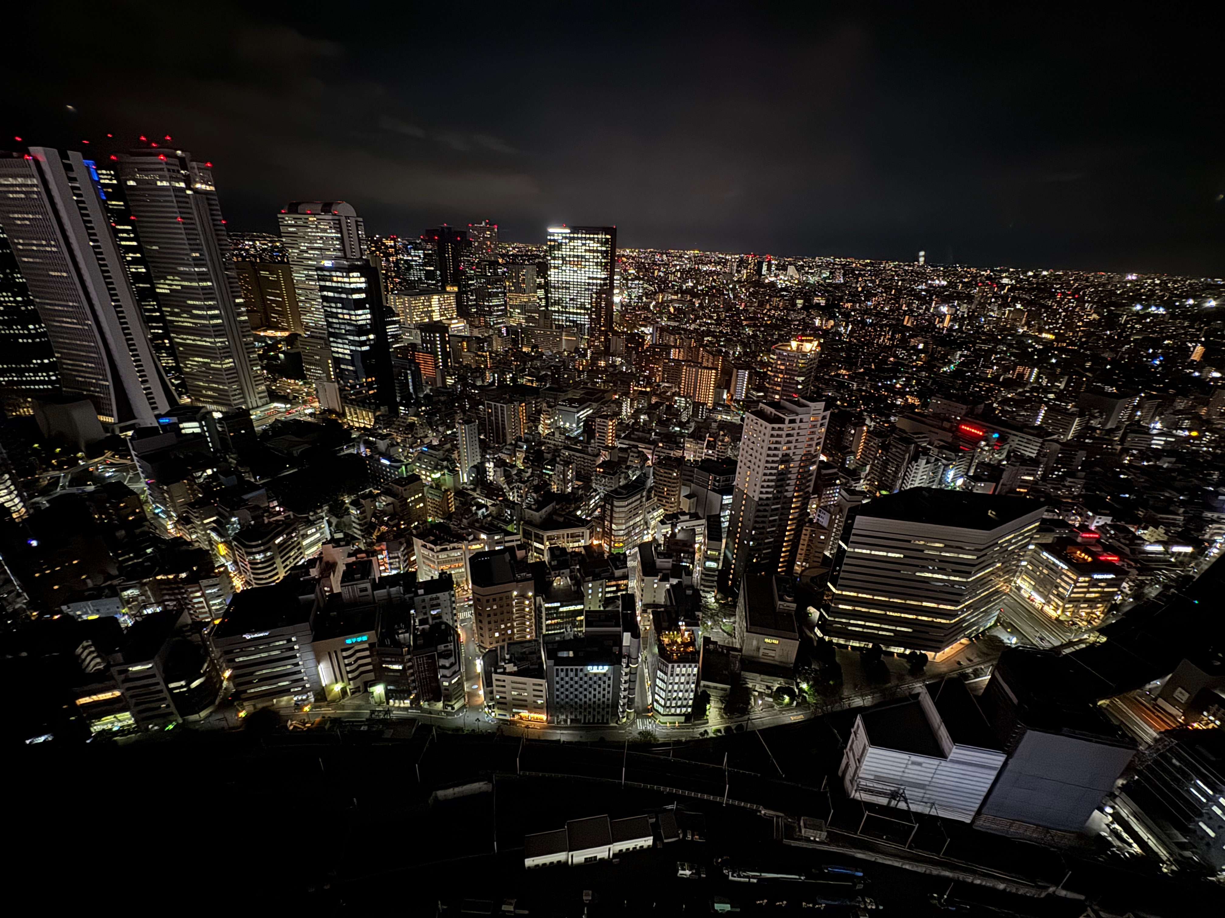 Floor to ceiling windows with a view all the way to the mountains beyond the basin where Tokyo nestles. We’re both a bit overwhelmed, and have a little sit down before venturing back out into the mayhem to find somewhere to sit and have a drink before today’s main event.
