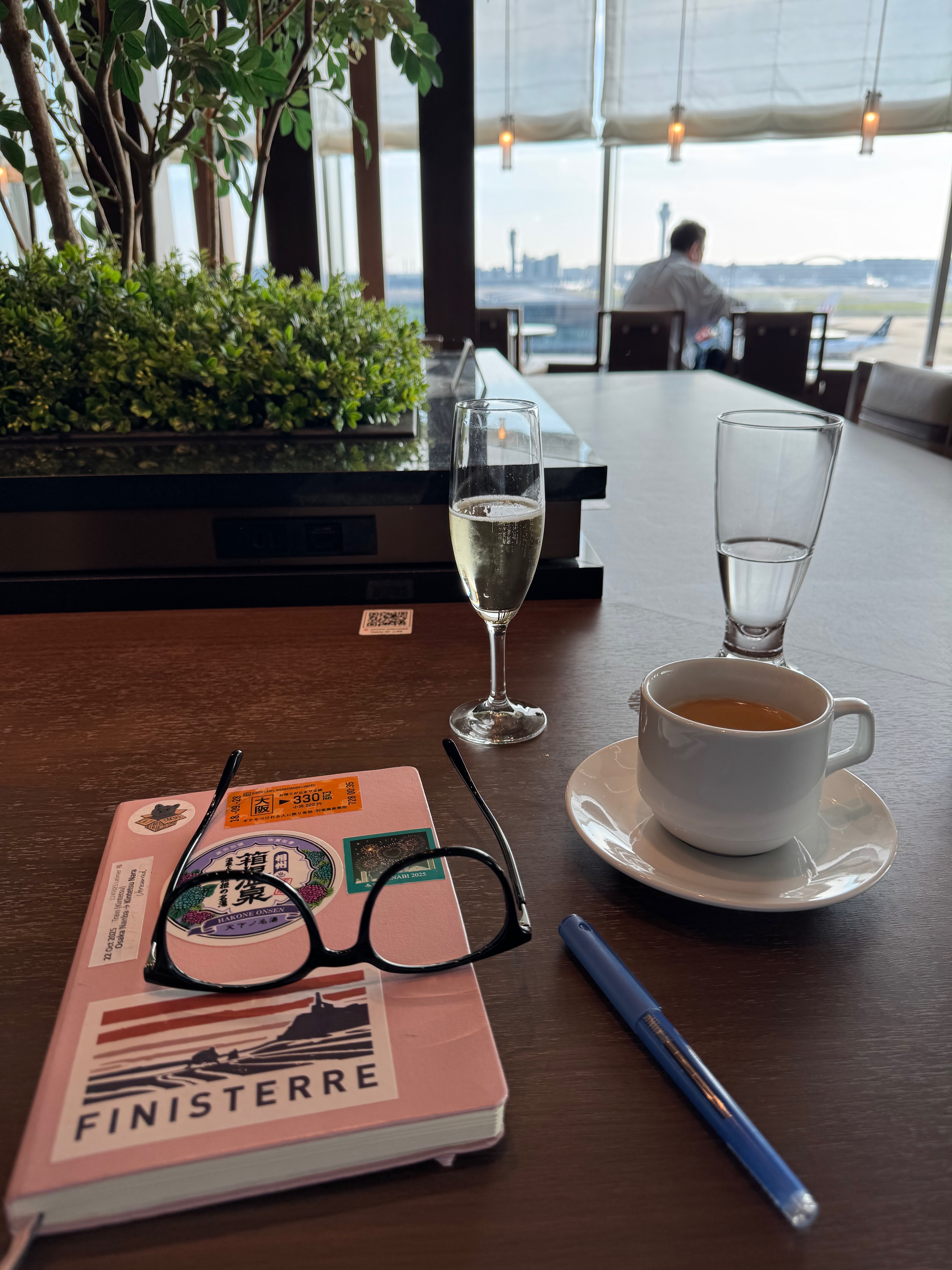 Zero queue, grinning at each other we waltz through and head towards the lounge. It seems that premium economy on Japan Airlines has more perks than you get on BA, no complaints from us. We find a tranquil table and load up on beef curry and rice, we’re still in Japan after all!