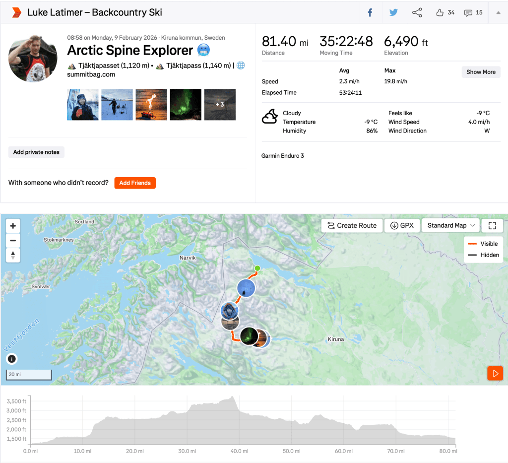 Gloves on, gloves off. Hat on, hat above my ears, hat off. Hood up, hood down, vents open, closed, half open. Constant little adjustments to stay somewhere between “sweaty” and “cold and scary”. I was down to a base layer and shell, even though it was -15 °C or lower. My pace was comfortable, running my own race. Not chasing, not waiting, just moving forward and hoping it was fast enough.