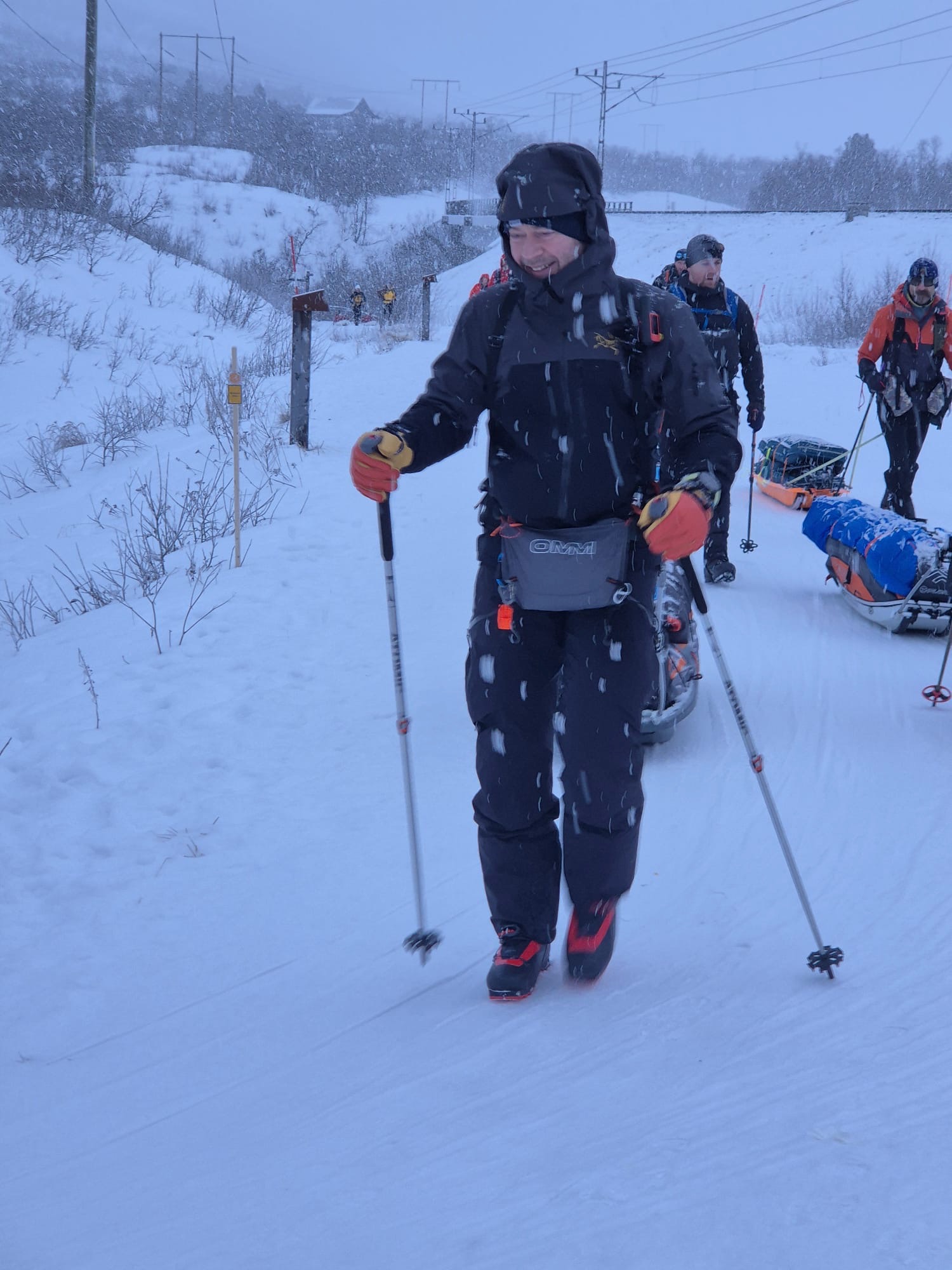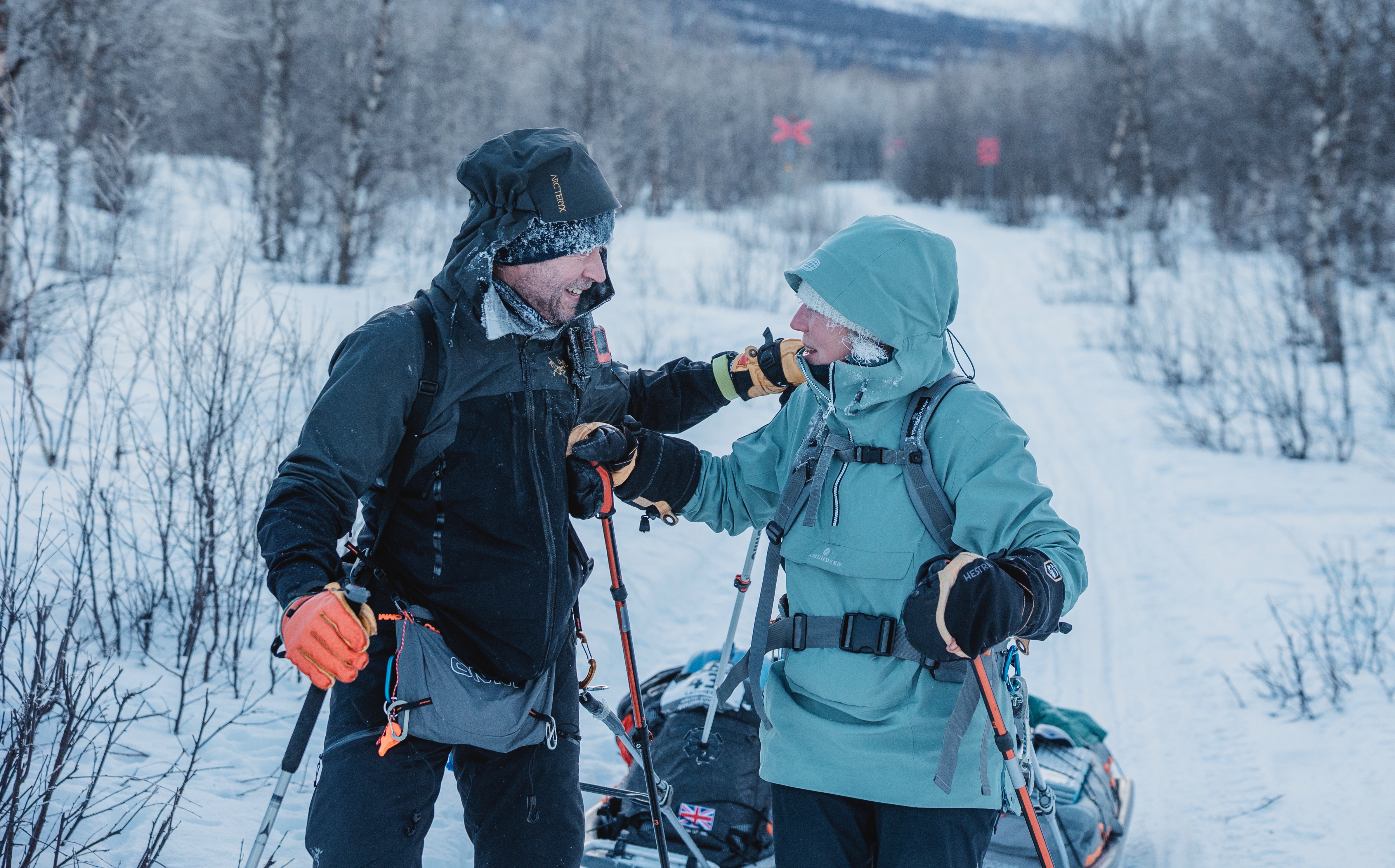 “Keep moving, I’ve got some hand warmers somewhere,” I said. Miraculously, they were right at the top of my rucksack, not buried under random kit in the pulk. I tore the packets open and dropped them into the bottom of her mitts.