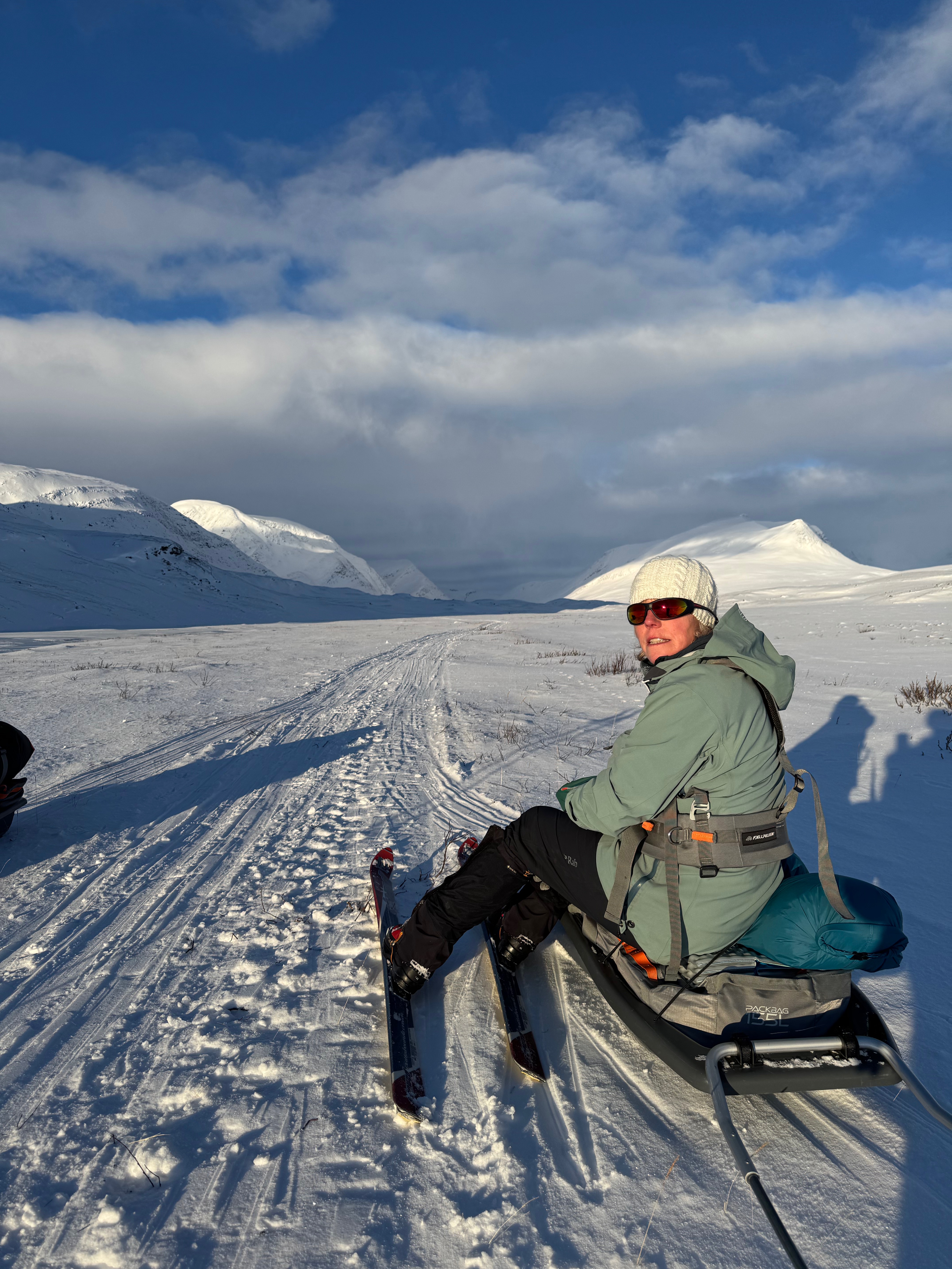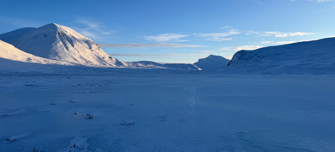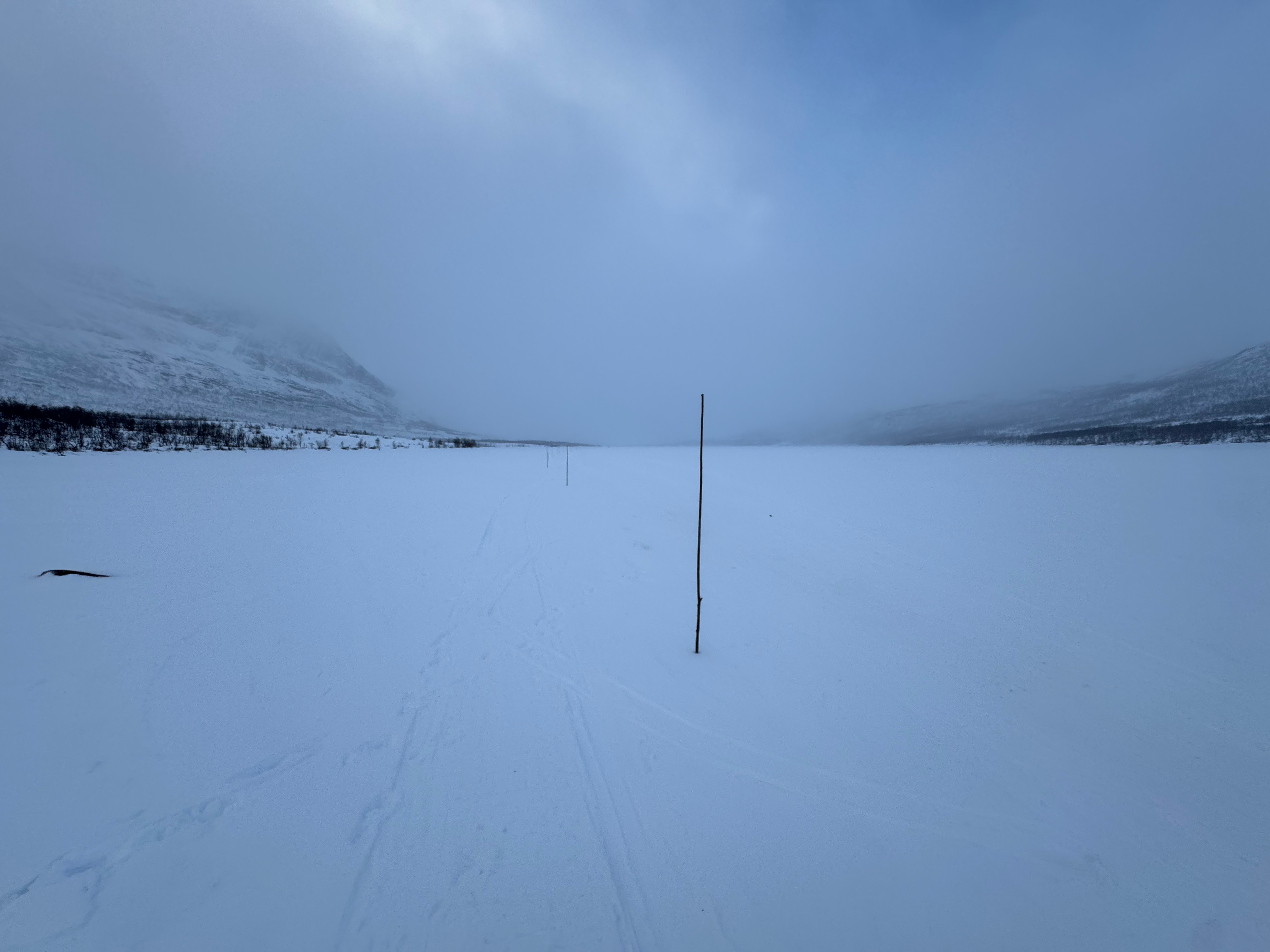 “We’ve just come up from Nikkaluokta. There’s a lot of sheet ice down there, and overflow on some of the lakes. Be careful – our snowmobile was skittering all over the place.”