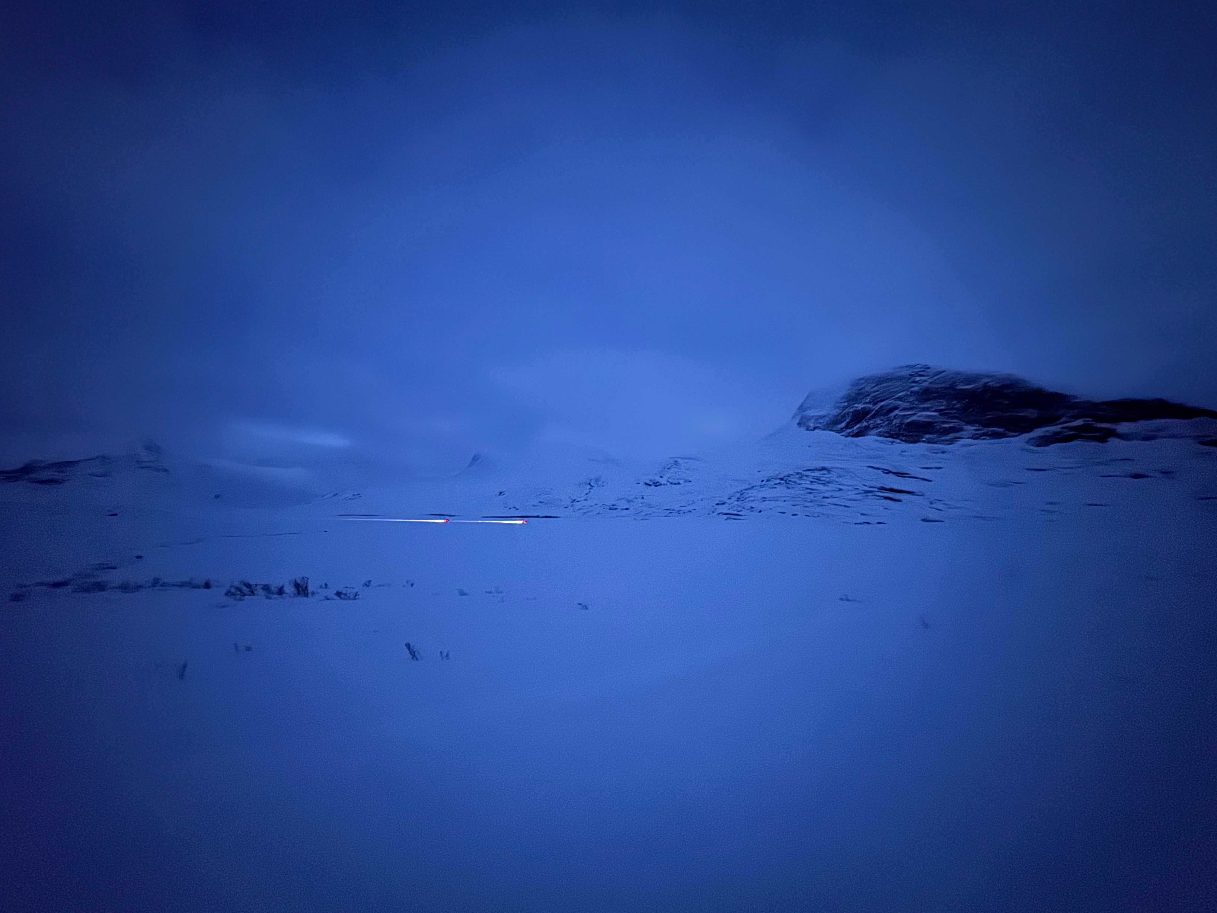 I stop, exhaling billowing clouds of vapour into the -30 °C air. Kirstie’s headtorch bobs around somewhere behind me. Ahead, the valley is just an empty black hole in the mountains and a faint line of snowmobile tracks. No shelter. No lights. No room for mistakes.